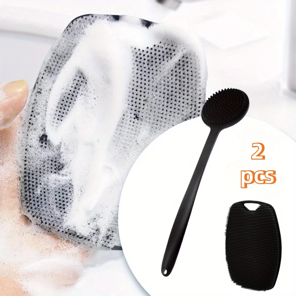 2Pcs Shower Back Scrubber Exfoliating Bath Brush Gentle Exfoliation Body Shower Silicone Shower Brush Long Handle Bath Brushes