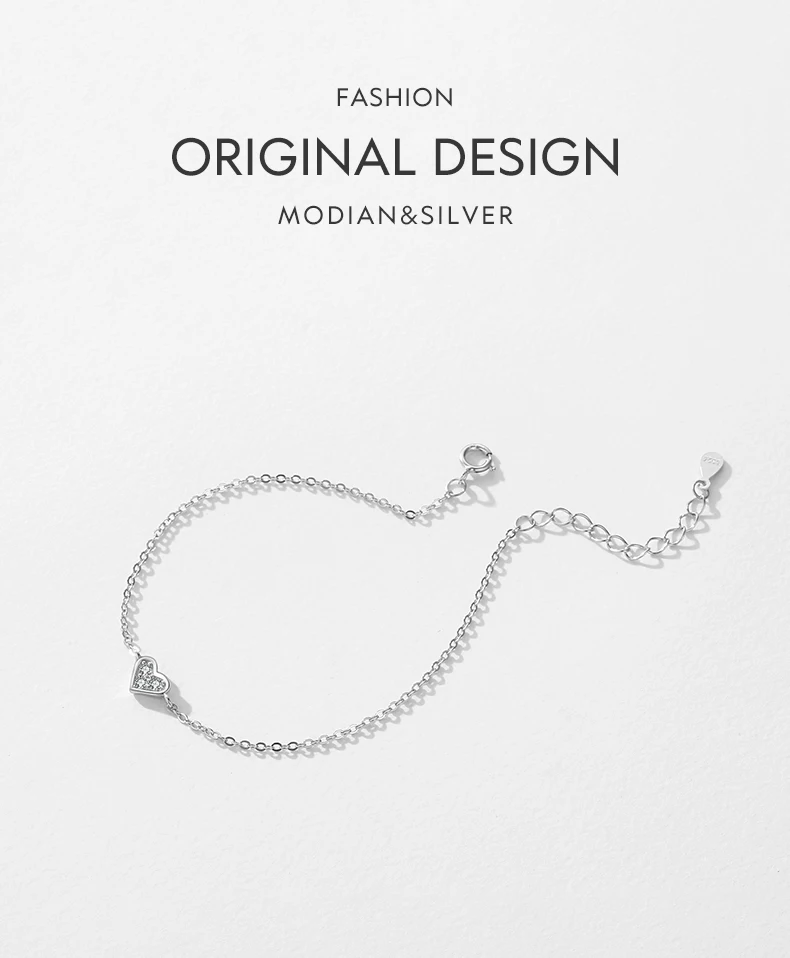 Modian Real 925 sterling silver Heart CZ Bracelet Fashion Crystal Wedding Lady Classic Romantic Jewelry
