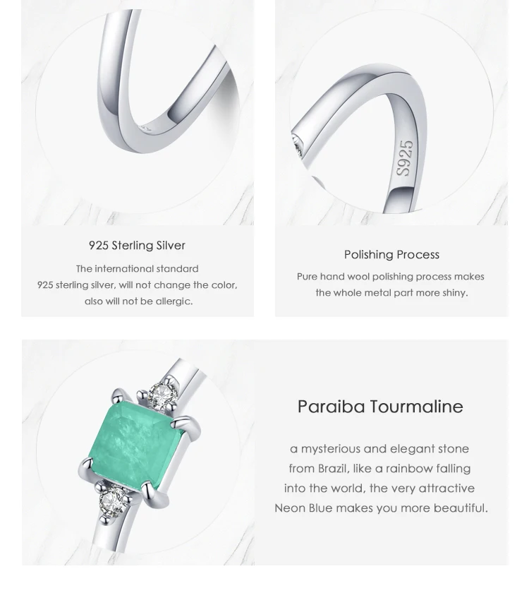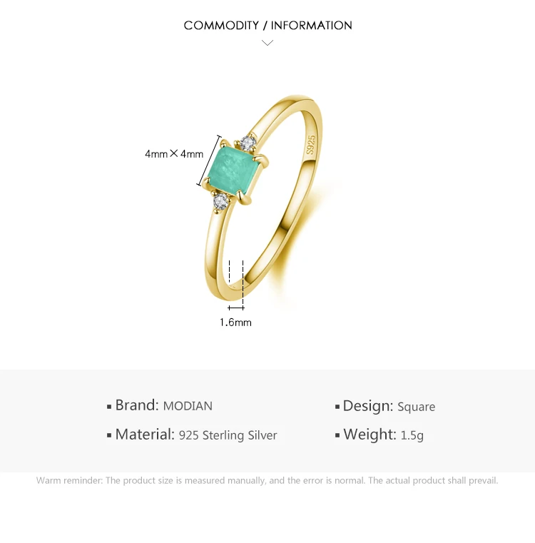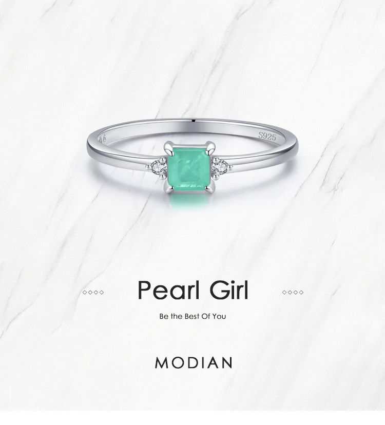 Modian New 925 Sterling Silver Fashion Emerald cut Tourmaline Finger Rings For Women Elegant Simple Paraiba Silver Fine Jewelry